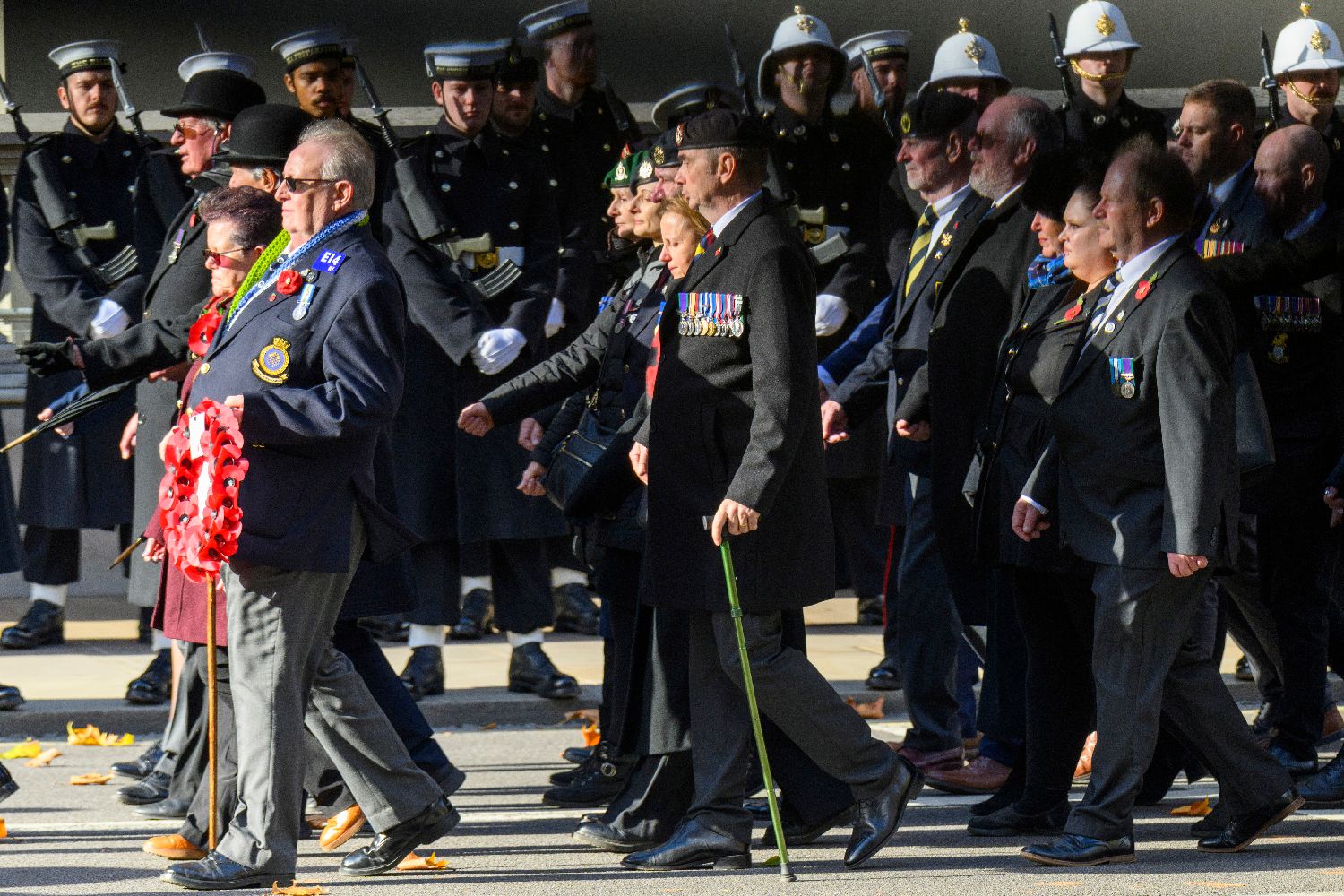 11月9日,在英国伦敦,老兵参加国家停战纪念日活动。