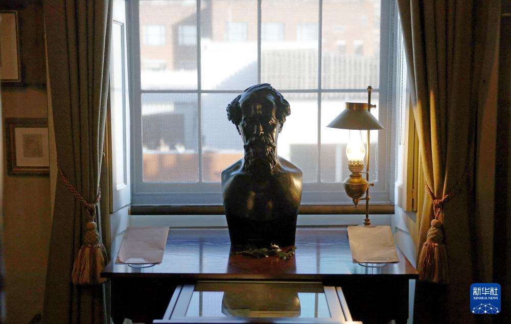 这是11月17日在英国伦敦狄更斯博物馆拍摄的狄更斯雕像。