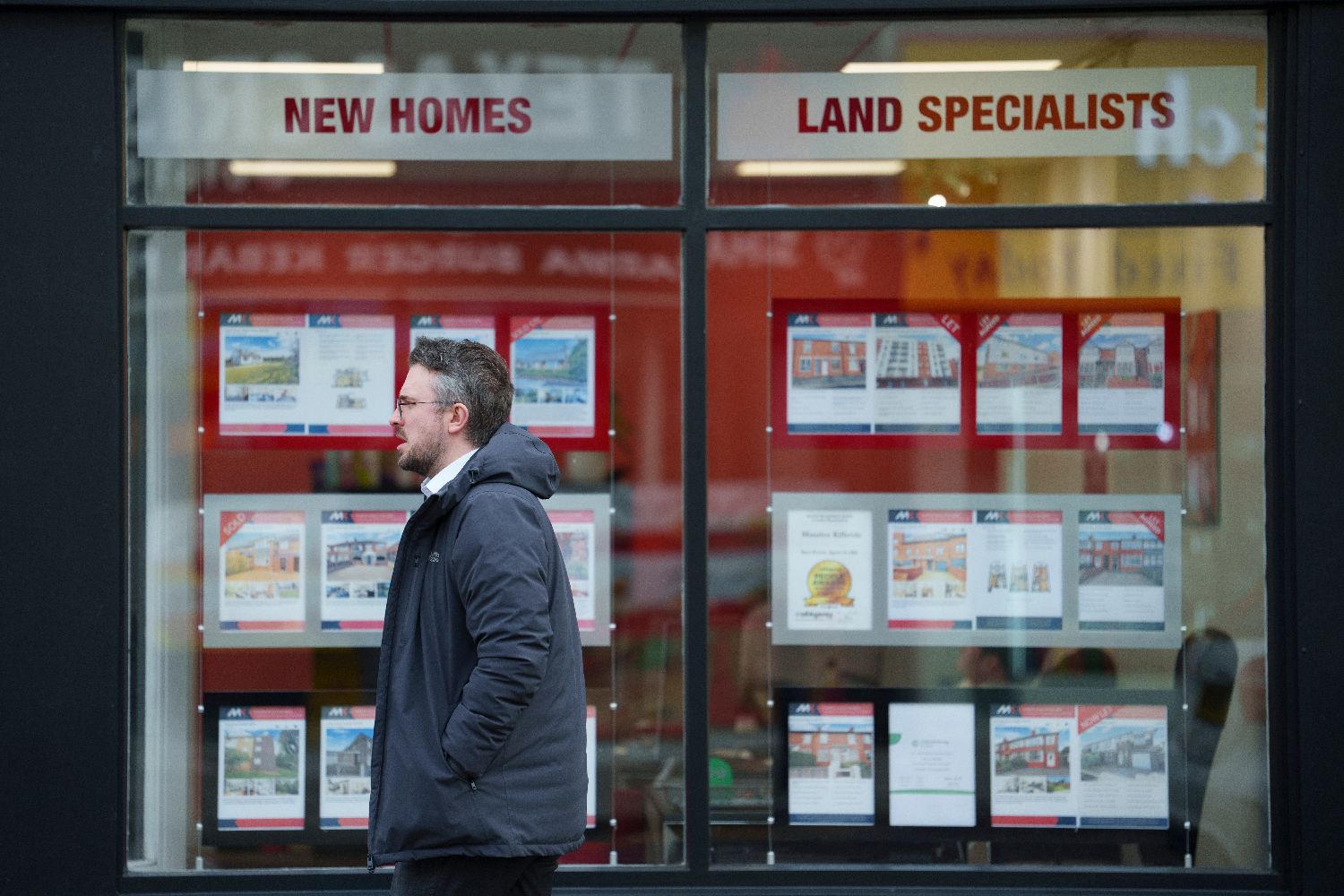 11月26日,在英国曼彻斯特,一名男子经过一家房屋中介门店。