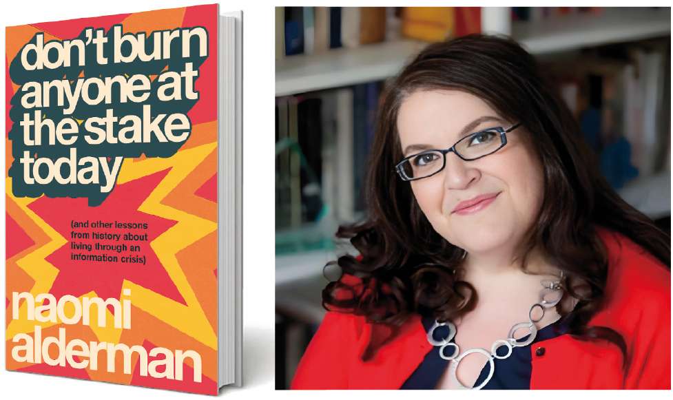 左图为《今天别再把人送上火刑柱》,右图为本书作者娜奥米·奥尔德曼。(图片来源:企鹅兰登书屋/作家官网)