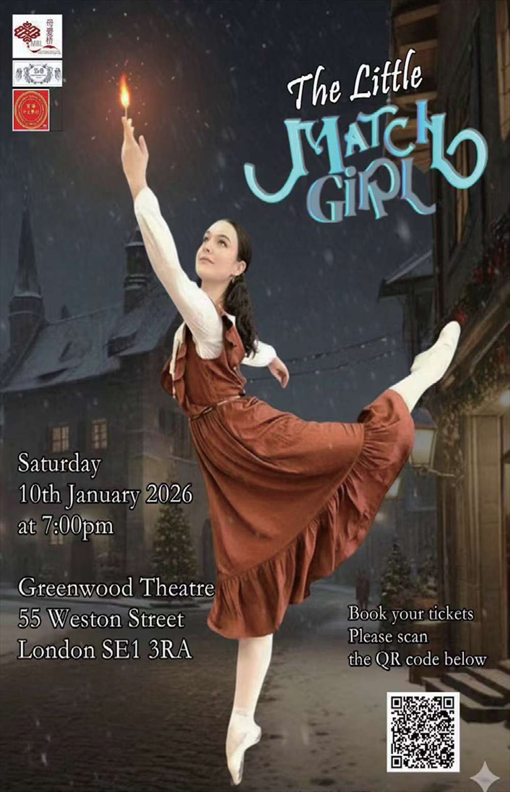 【欧洲时报】由英国TG芭蕾舞团与育华中文学校合作监制、慈善机构“母爱桥”赞助的芭蕾童话剧《卖火柴的小女孩》,将于2026年1月10日晚上7时在伦敦Greenwood Theatre上演。