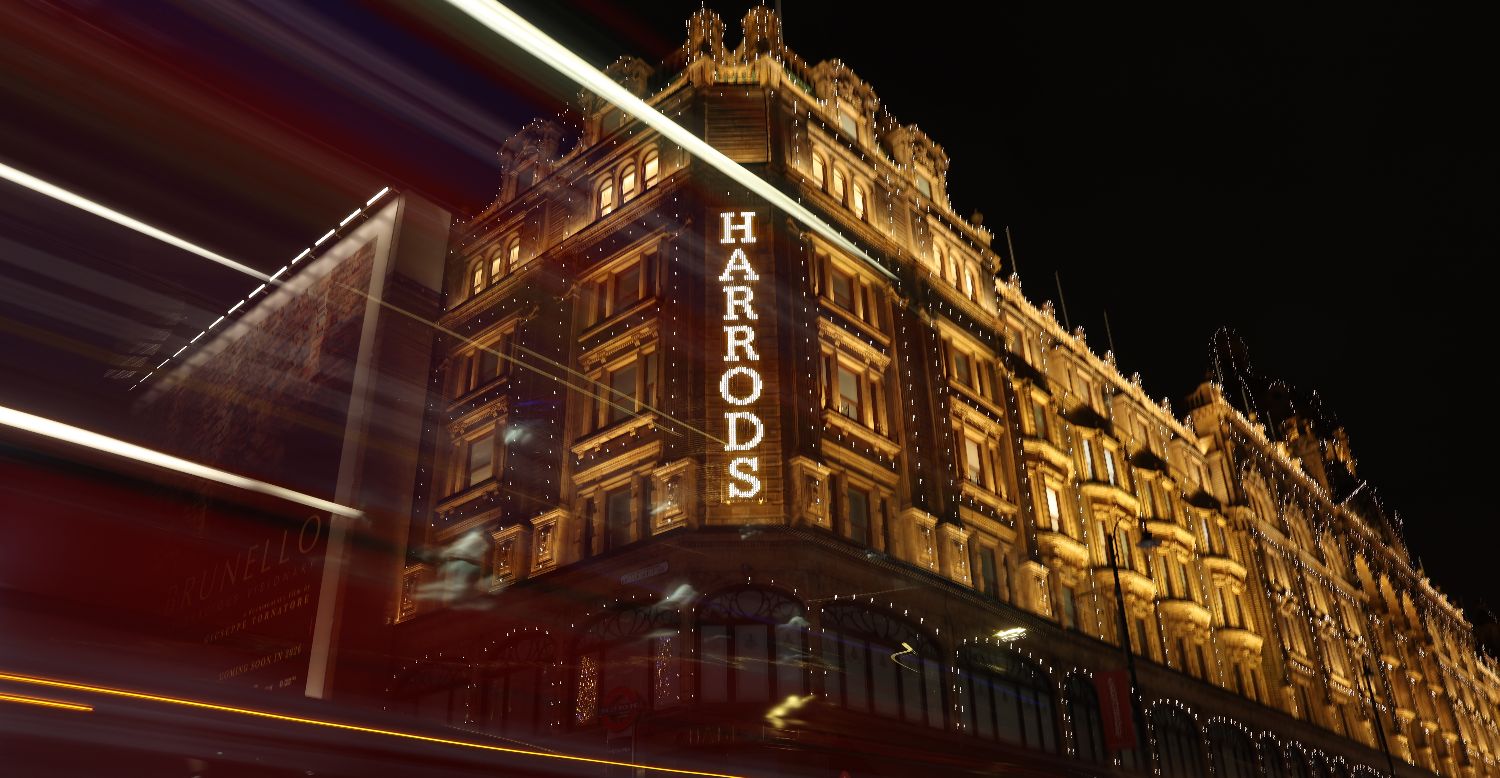12月17日在英国伦敦拍摄的哈罗德百货商店外的彩灯。