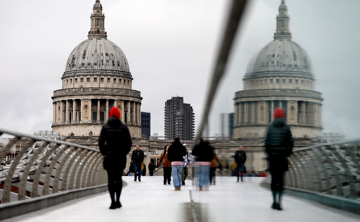 1月27日,一名女子行走在英国伦敦千禧桥上。(图片来源:本文图片均据新华社)