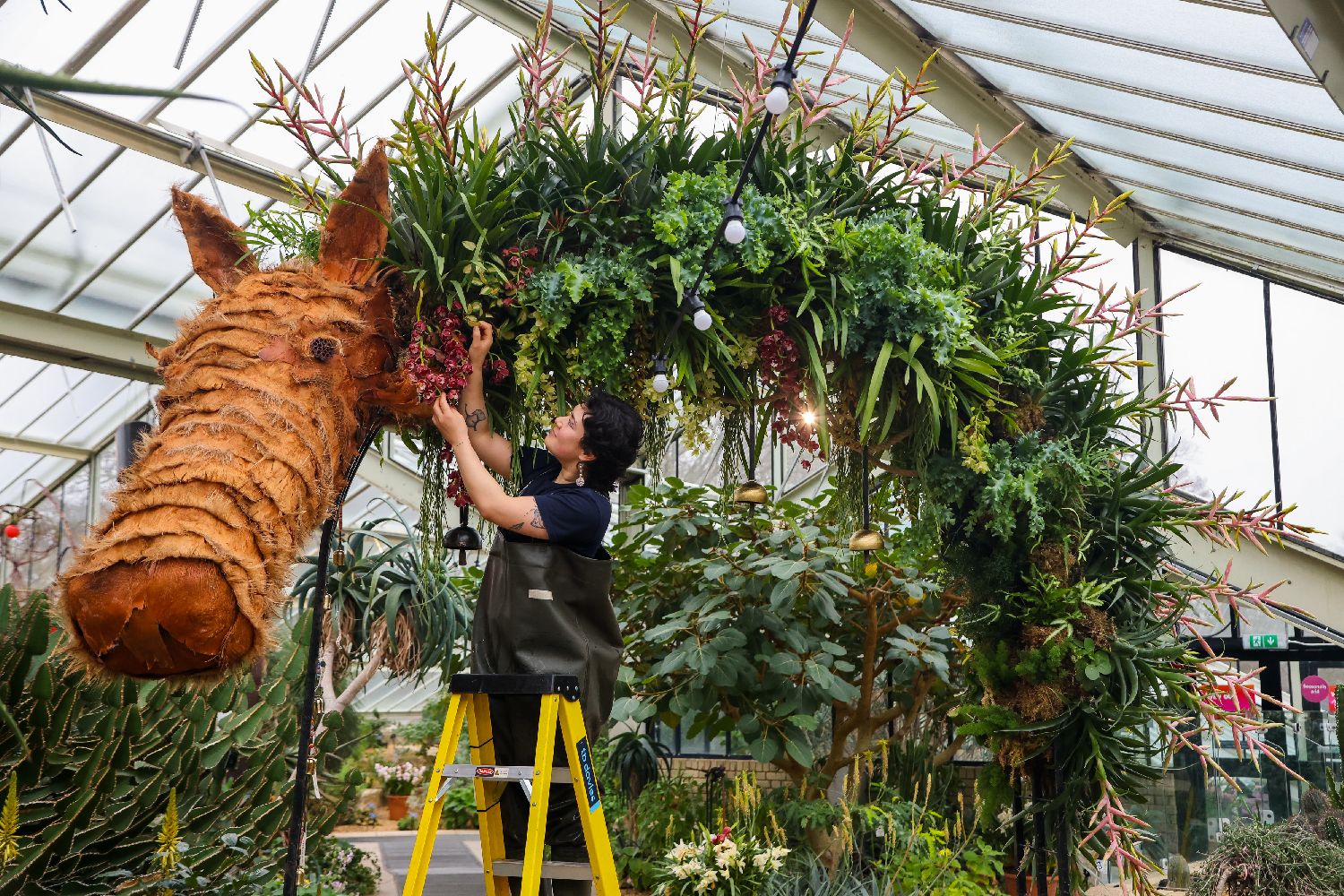 2月5日,园艺师在英国伦敦邱园为兰花节做准备。
