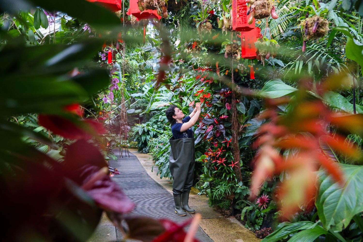2月5日,园艺师在英国伦敦邱园为兰花节做准备。(图片来源:本文图片均据新华社)