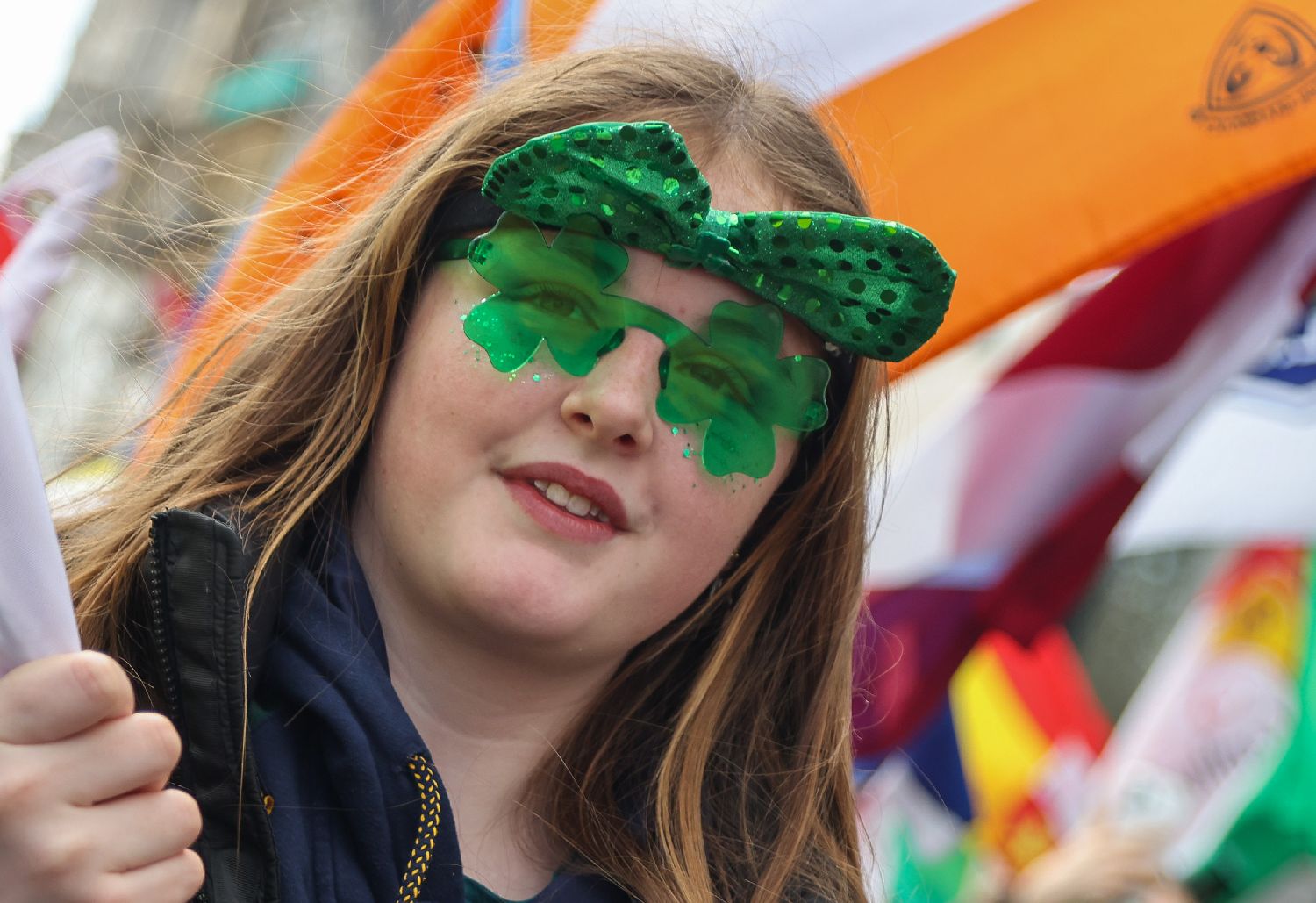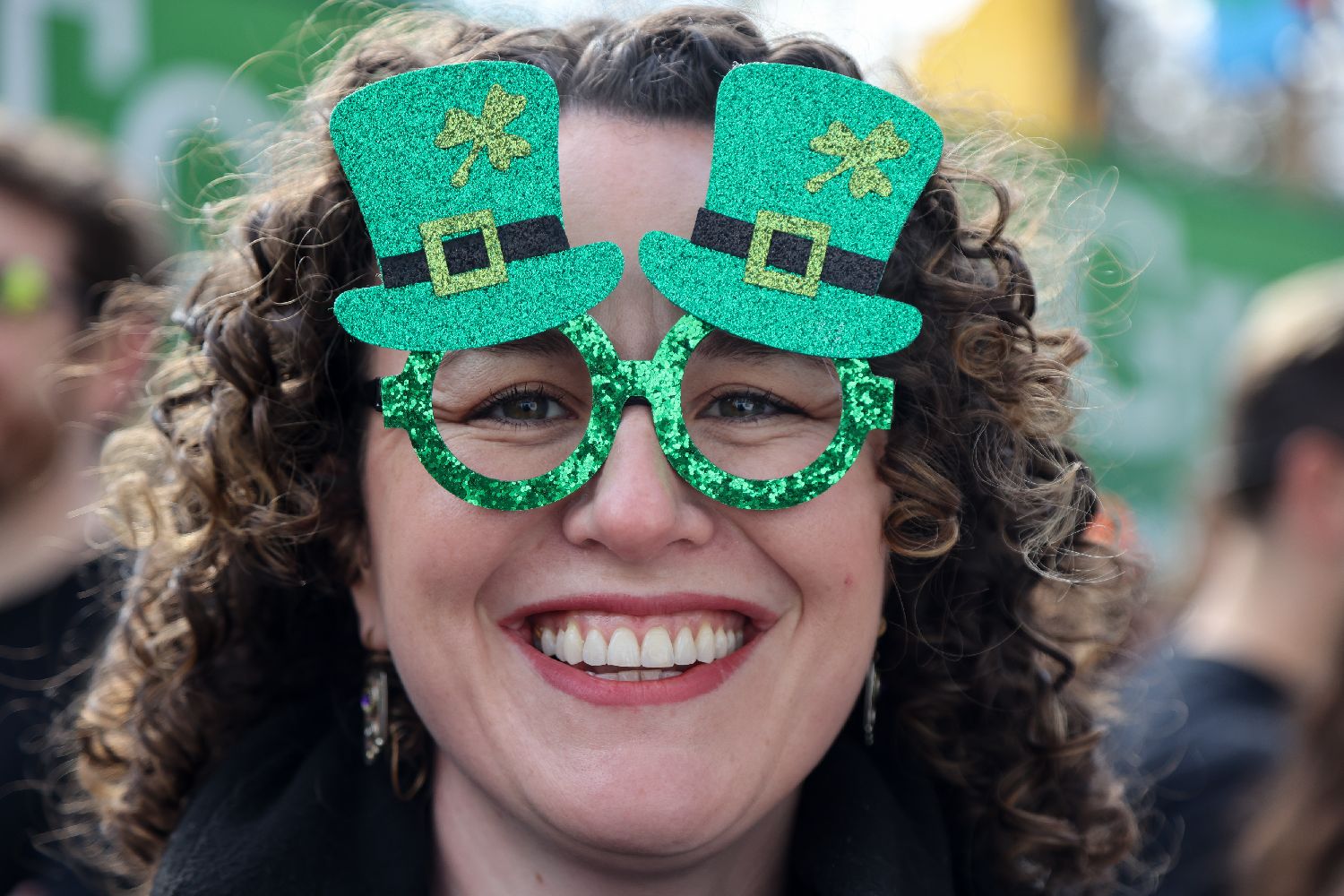 3月15日,一名女子在英国伦敦参加圣帕特里克节游行。