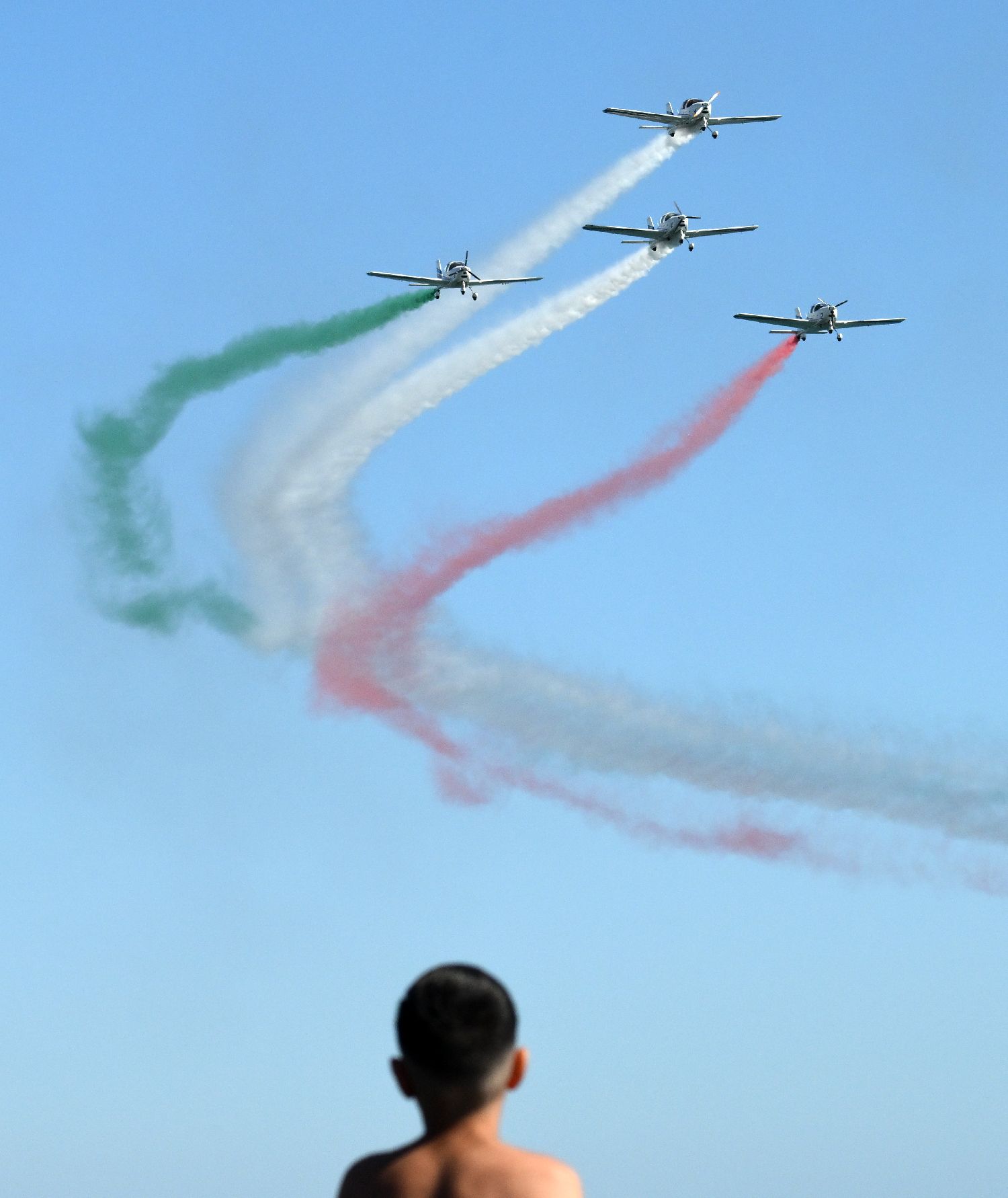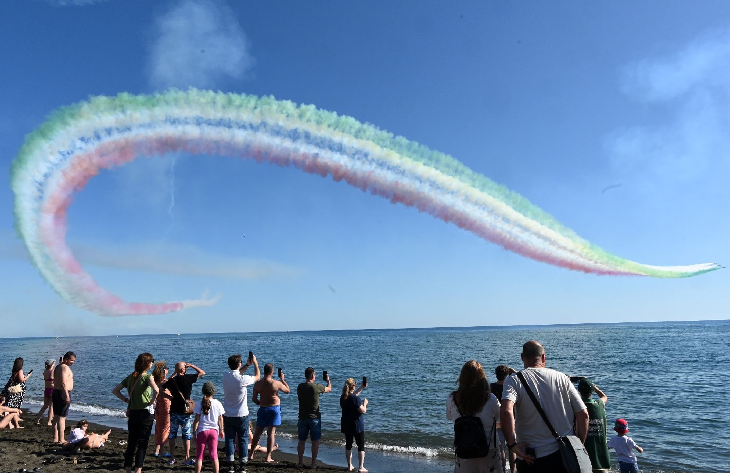 6月1日,人们在意大利罗马附近的拉迪斯波利观看飞行表演。(图片来源:本文图片均据新华社)