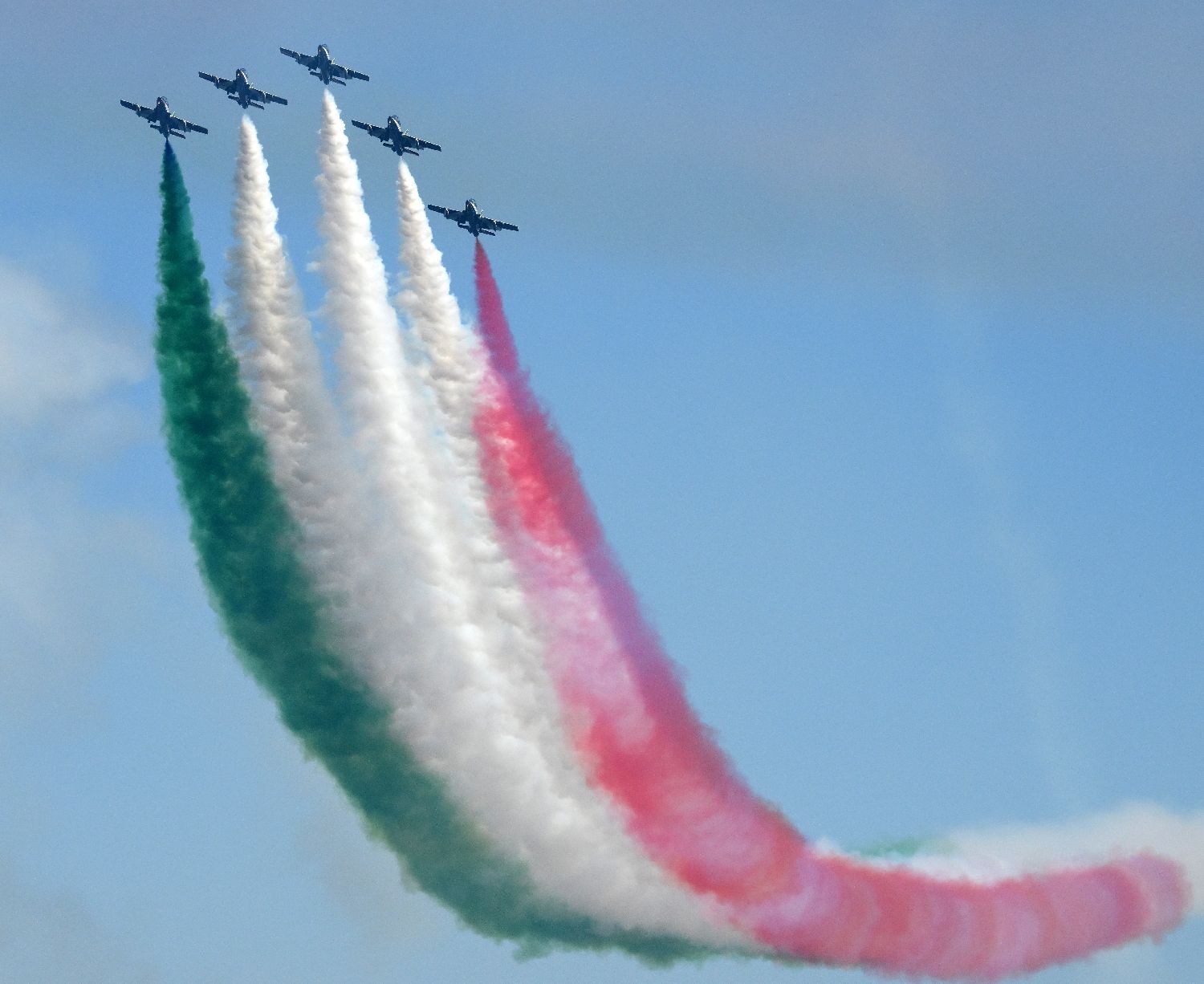 6月1日,意大利“三色箭”飞行表演队在意大利罗马附近的拉迪斯波利举行的航展上表演。