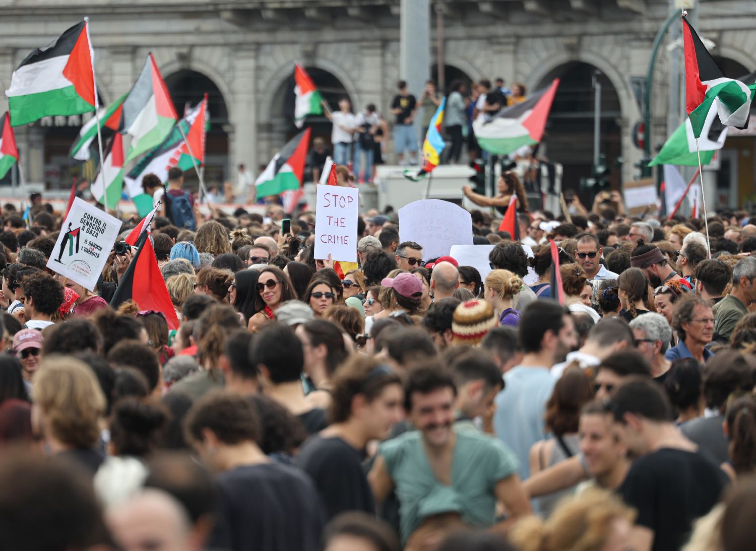 9月22日,意大利全国多地爆发声援巴勒斯坦的罢工和示威游行,抗议意大利政府向以色列提供武器装备,要求以色列停止在加沙地带的“种族灭绝”,并呼吁向加沙地带提供人道援助。