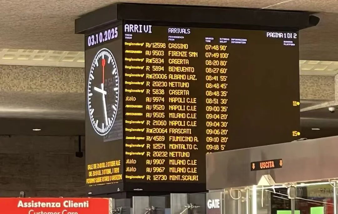 多地环城高速遭到封锁,铁路运输则因罢工和示威受阻而出现大规模延误与列车停运。在比萨,抗议者更是冲入机场跑道,导致所有航班被迫暂停。