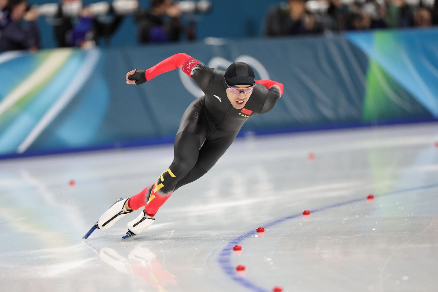 当地时间11日进行的米兰冬奥会速度滑冰男子1000米比赛中,中国选手宁忠岩获得铜牌。图为宁忠岩在比赛中。(图片来源:中新社)