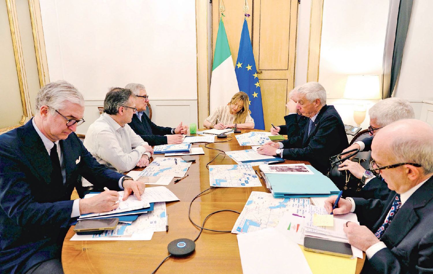 2月28日,总理梅洛尼在罗马召开关于中东局势的紧急会议。(图片来源:意大利总理府官网)