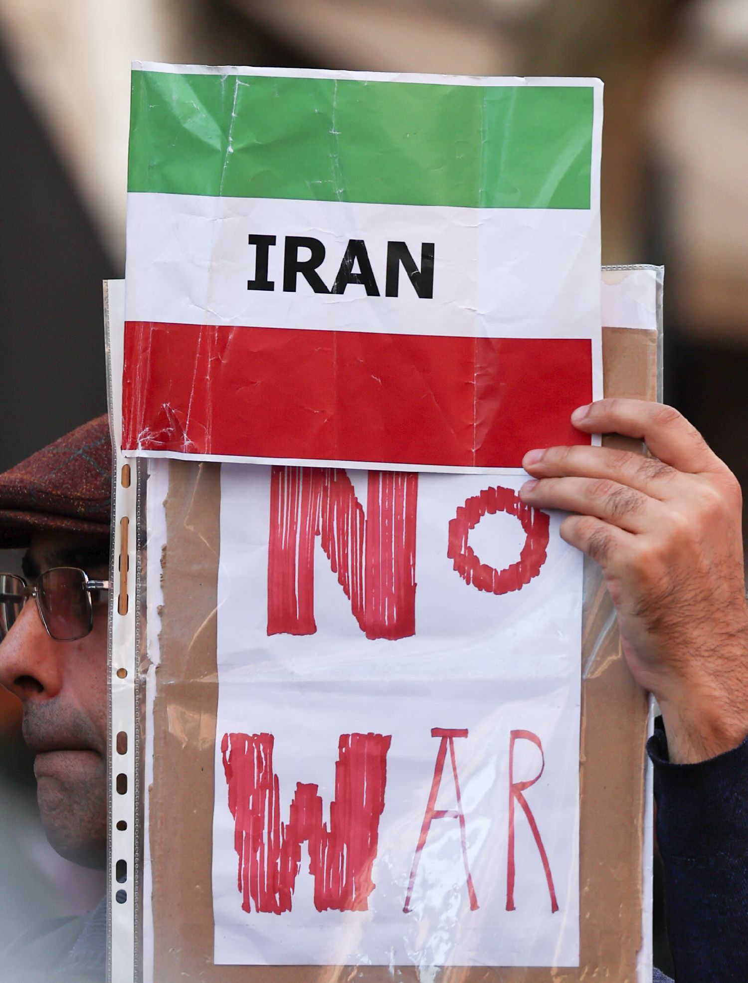 3月28日,在意大利首都罗马,一名男子手举标语参加反战游行。
