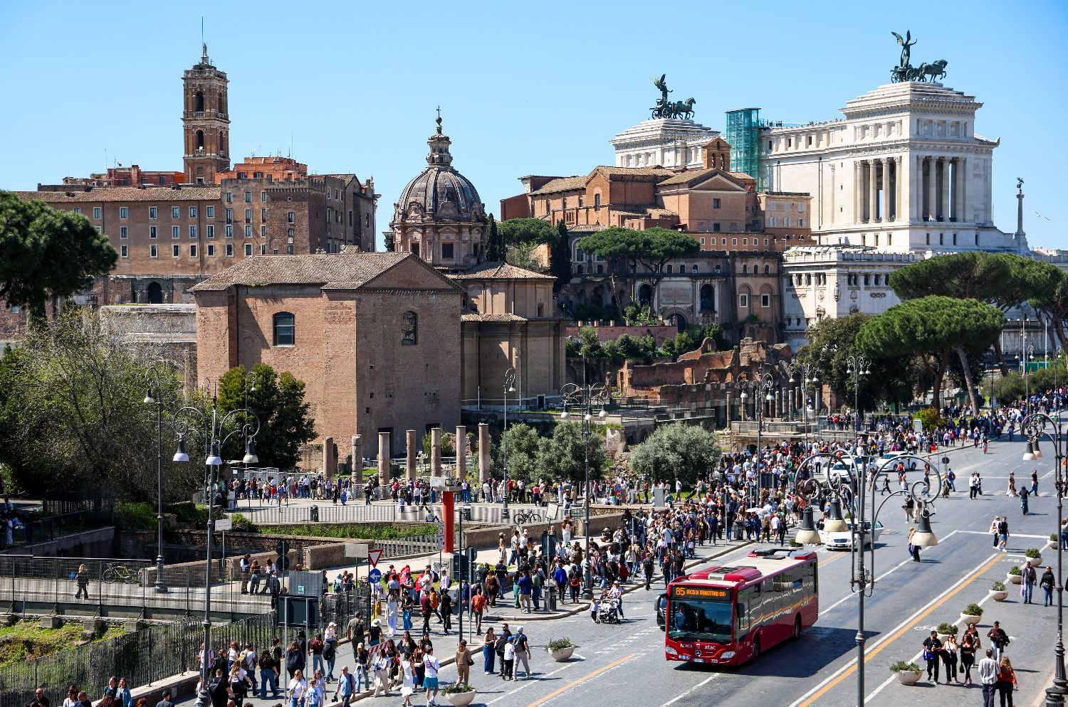 4月4日,游客在意大利首都罗马的威尼斯广场参观游览。