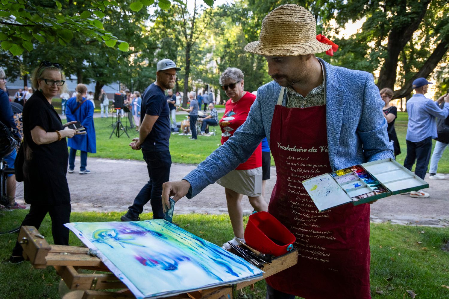 8月14日,在芬兰赫尔辛基,一名画家现场作画。