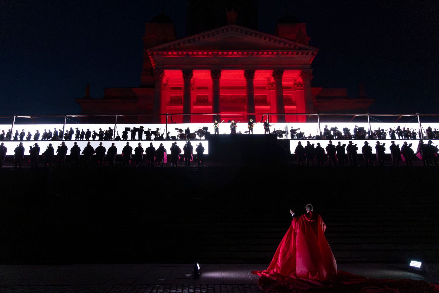 8月15日,演员在芬兰赫尔辛基参加艺术之夜活动的表演。