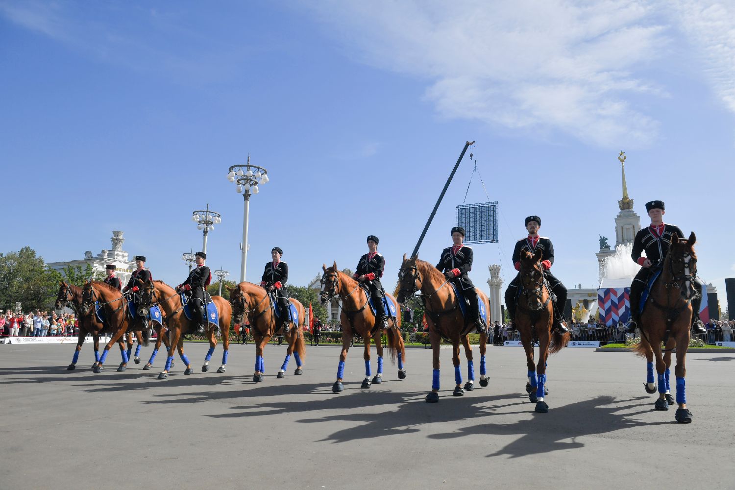 9月13日,骑手在俄罗斯莫斯科的国民经济成就展览馆参加纪念活动。