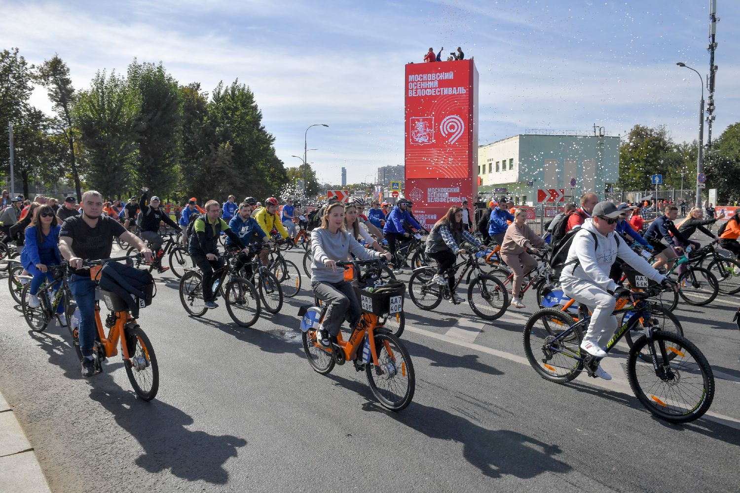 9月13日,人们在俄罗斯莫斯科参加骑行活动。