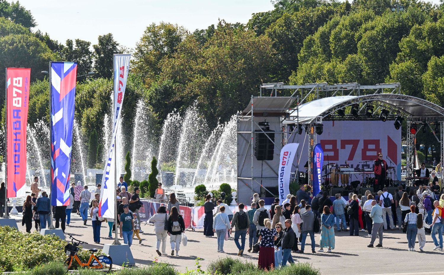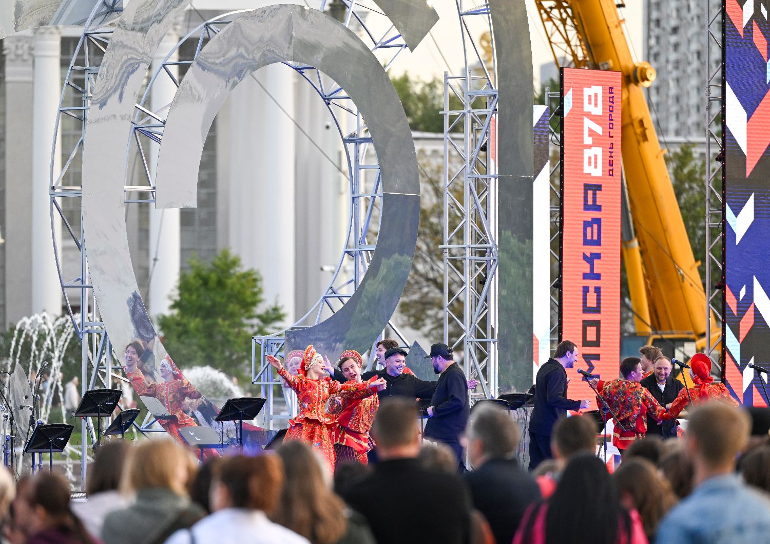 9月13日,人们在俄罗斯莫斯科国民经济成就展览馆观看表演。