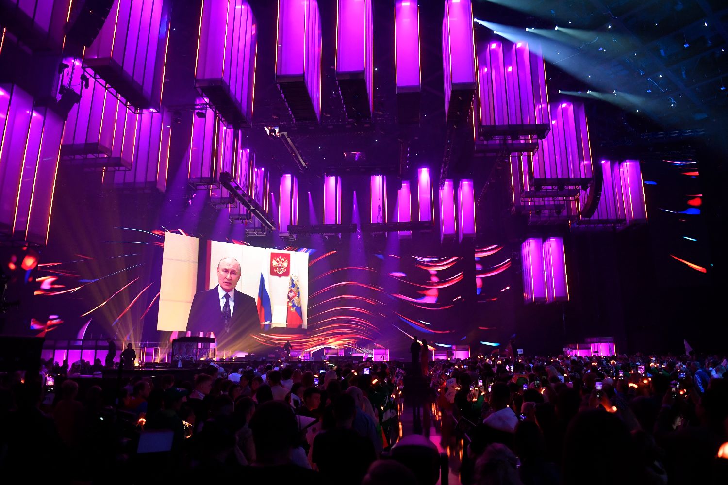 9月20日,在俄罗斯莫斯科,俄罗斯总统普京在“国际视界”音乐大赛前发表视频致辞。