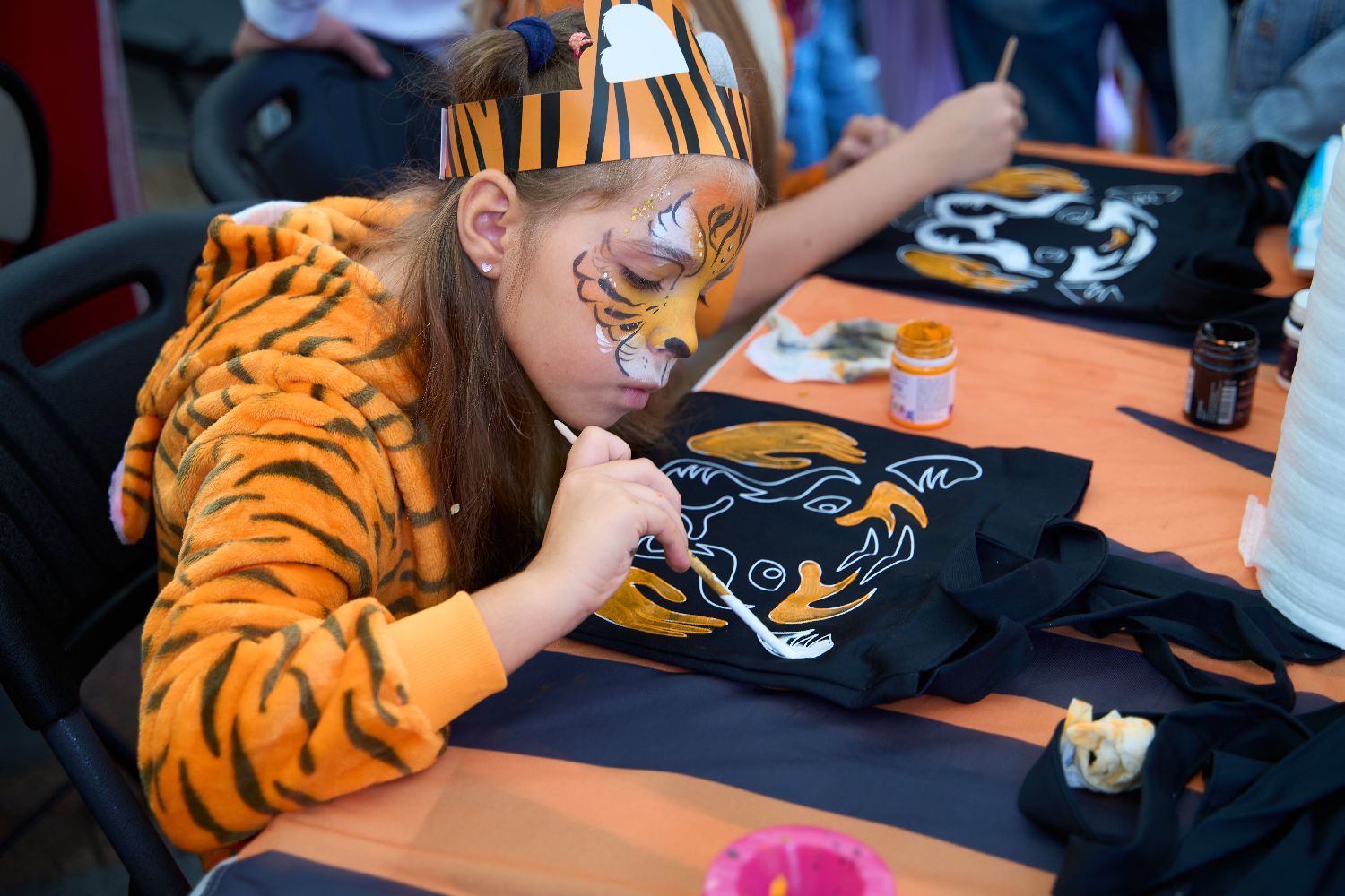 9月28日,在俄罗斯符拉迪沃斯托克举行的“老虎日”活动上,一名女孩在环保袋上画老虎图案。(图片来源:本文图片均据新华社)