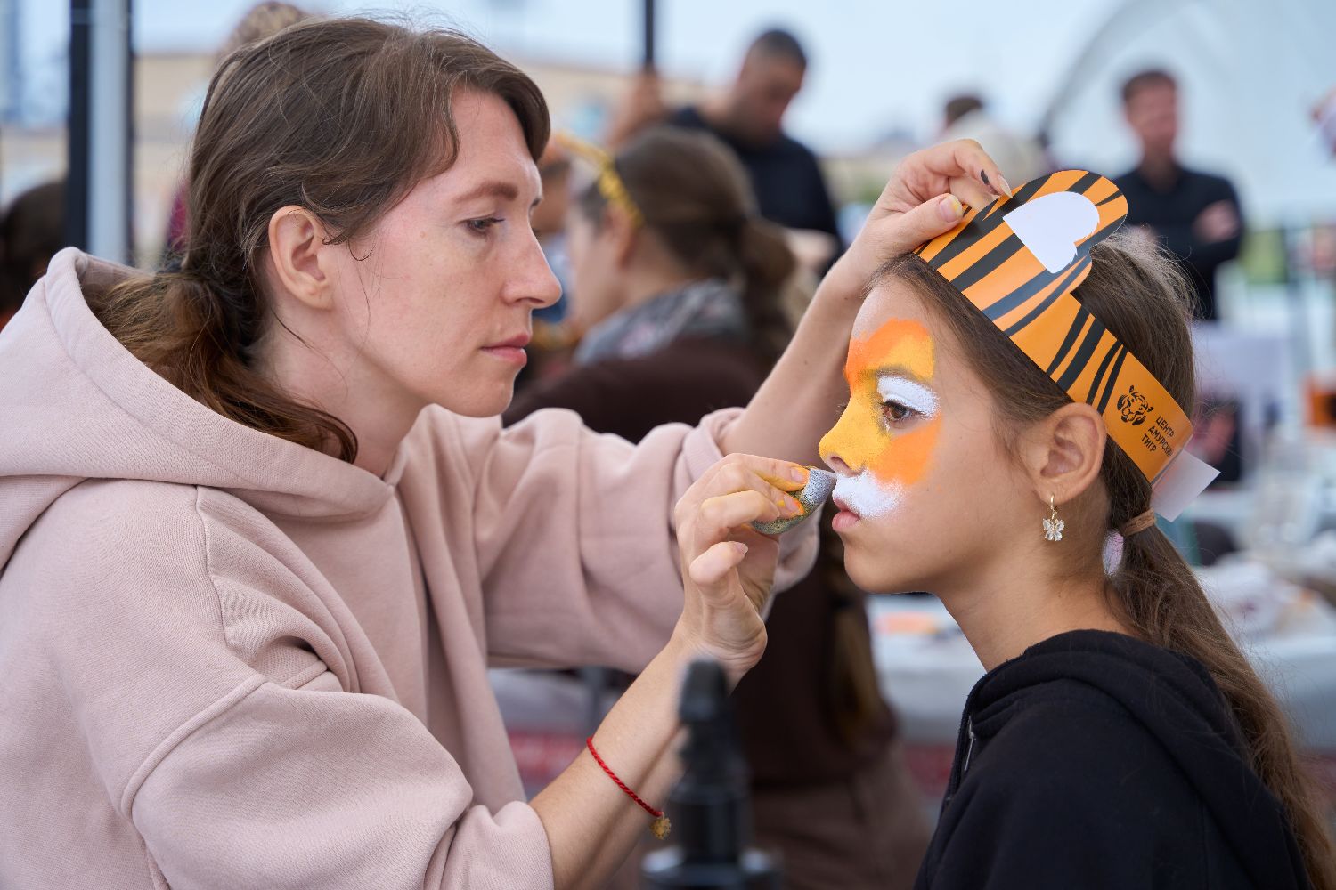 9月28日,在俄罗斯符拉迪沃斯托克举行的“老虎日”活动上,化妆师在一名女孩脸上画老虎彩妆。