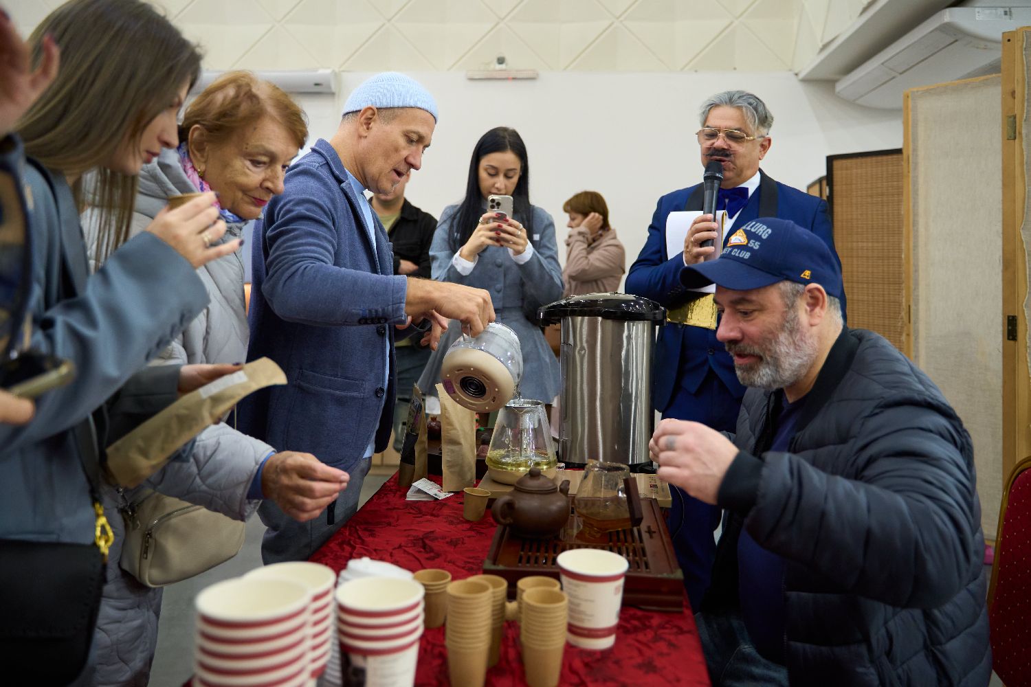 10月9日,在俄罗斯符拉迪沃斯托克市举办的茶艺与咖啡品鉴活动上,咖啡馆工作人员进行中国茶艺表演。