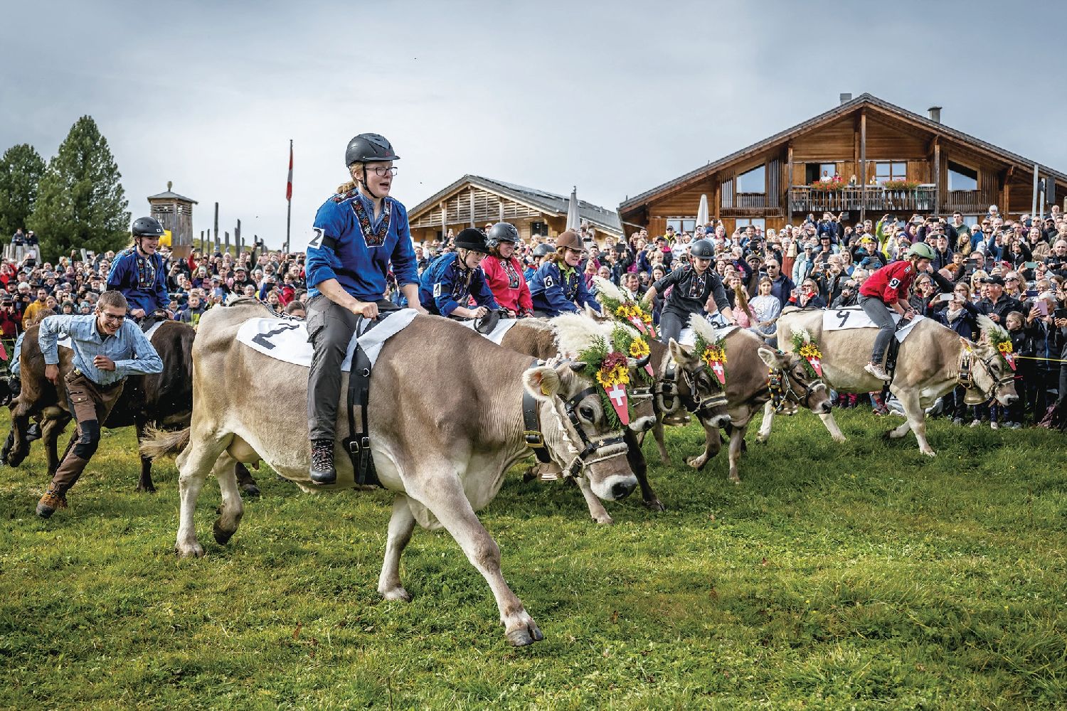 10月19日,瑞士度假胜地弗卢姆瑟贝格举行“奶牛大奖赛”。这是仅限女性参加的骑牛比赛,自2006年以来一直是当地秋季庆典的重头戏,在传统的奶酪集市之外,为几个星期后将迎来第一场冬雪的牧场增添一份欢快。法新社图