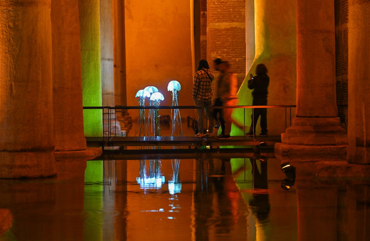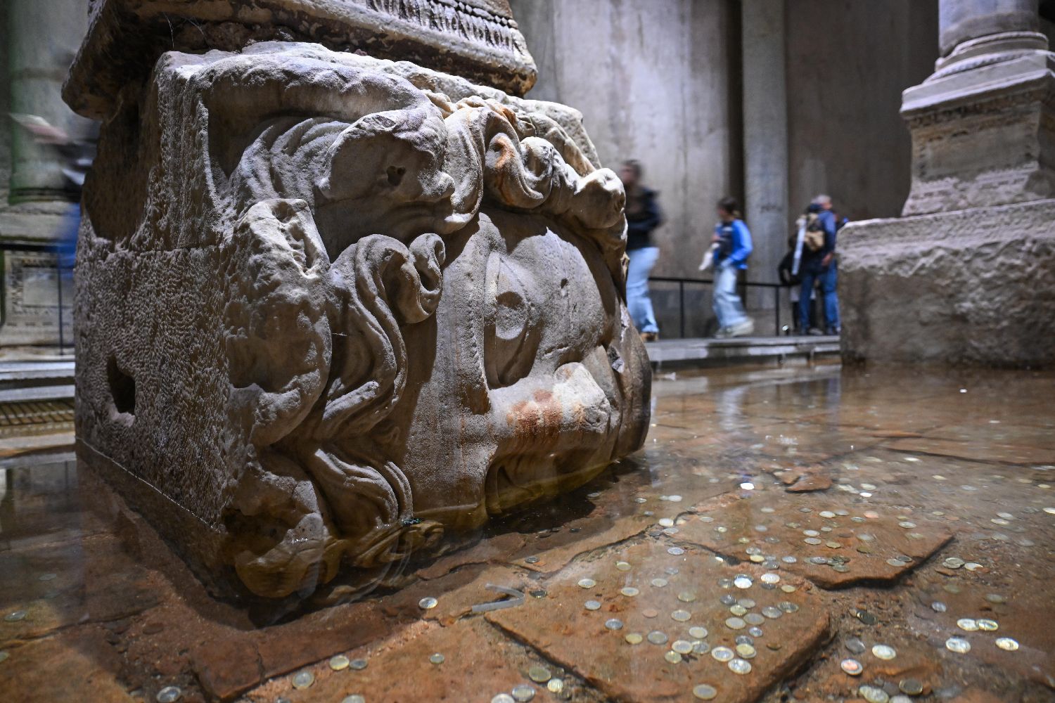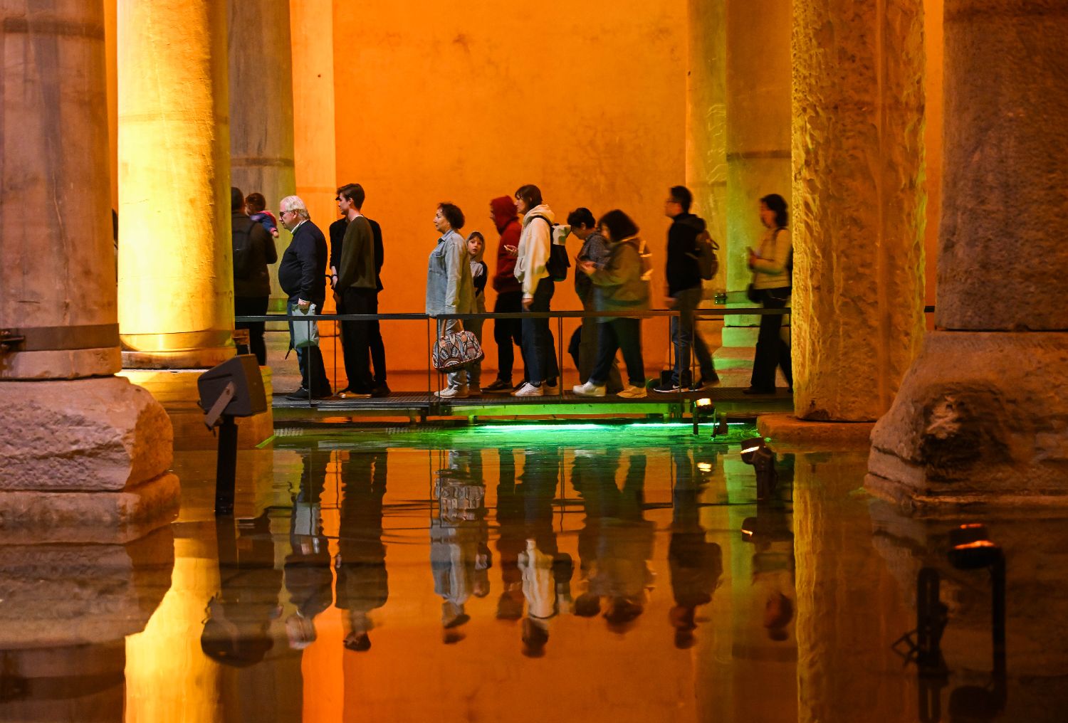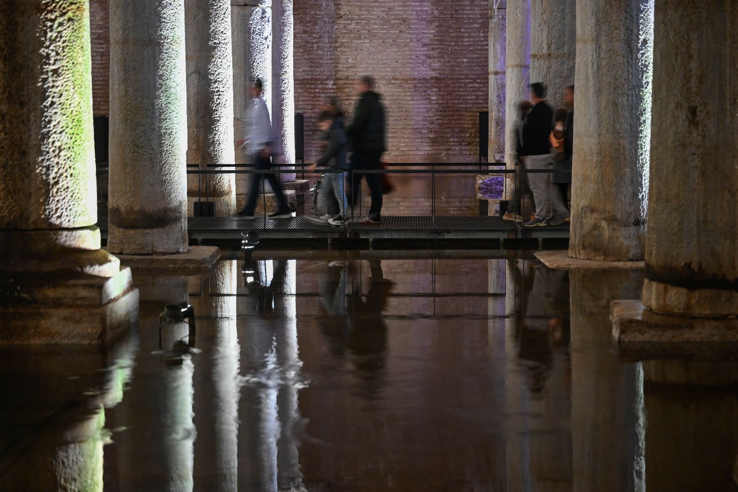 游客在土耳其伊斯坦布尔地下水宫参观。