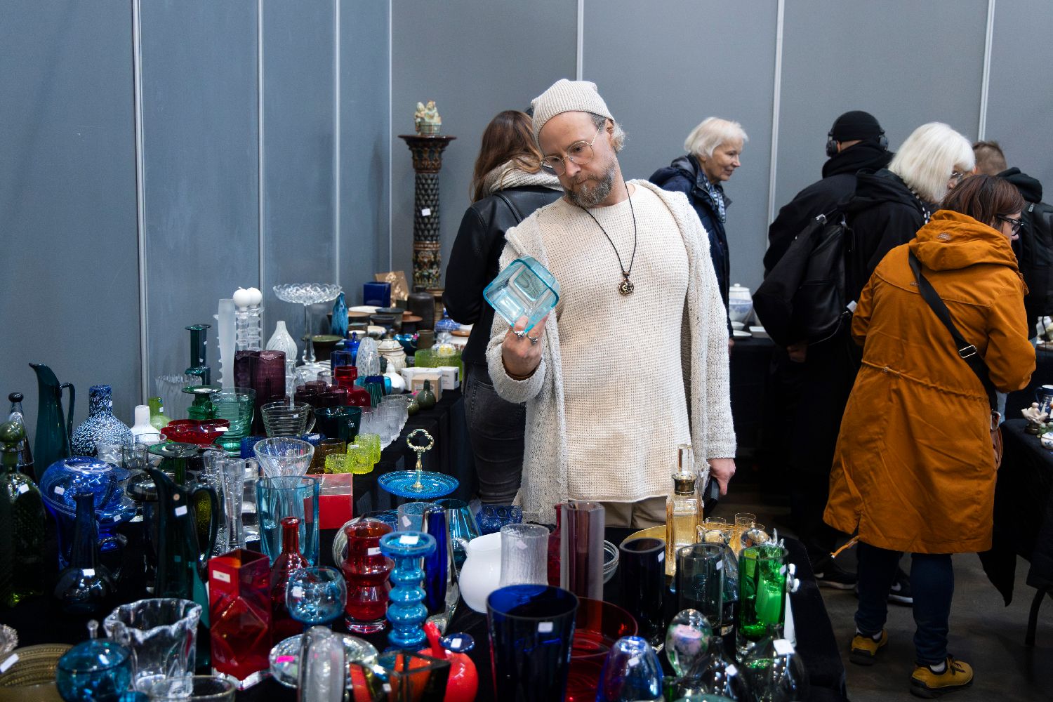 11月1日,一名男子在芬兰赫尔辛基古玩展上观摩展品。