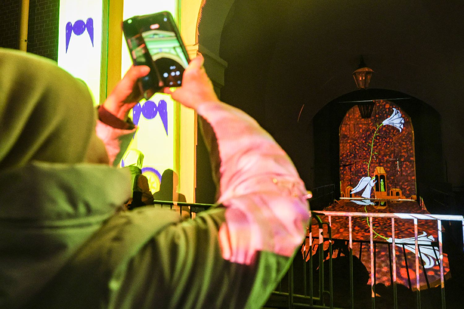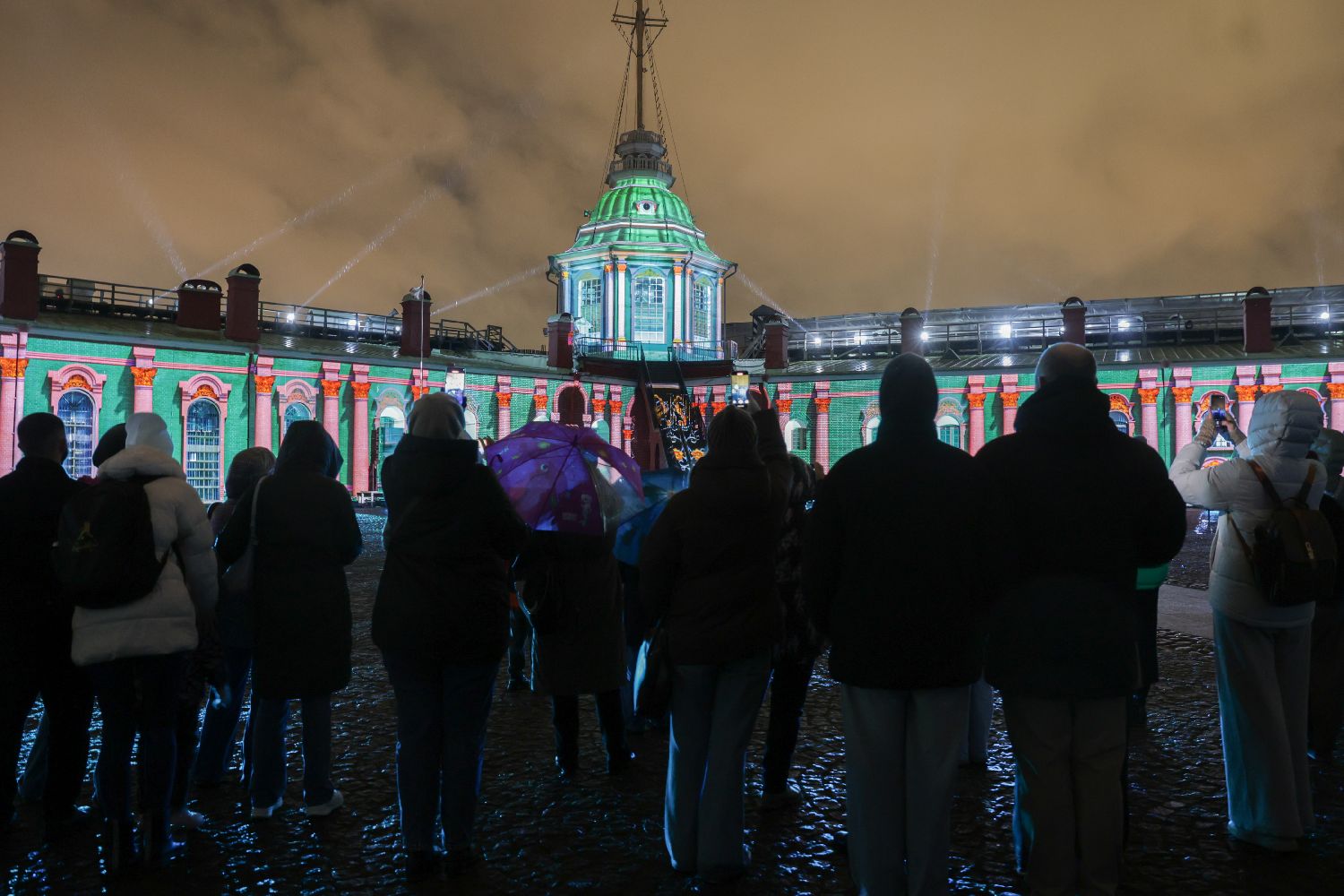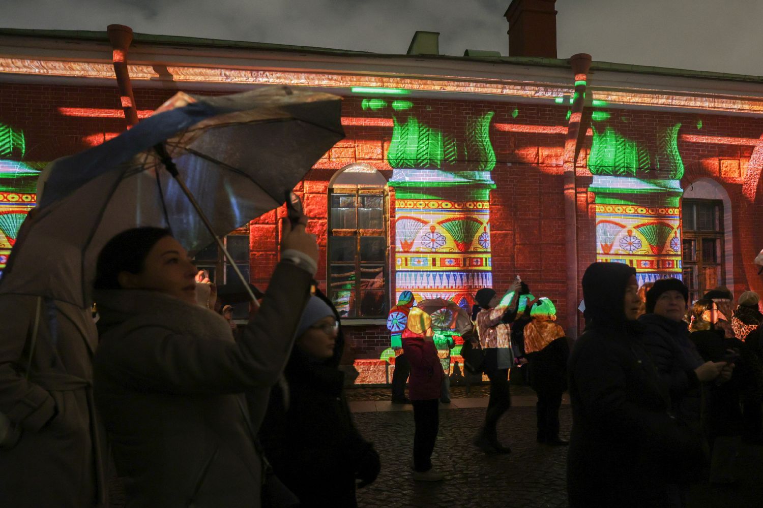 俄罗斯圣彼得堡11月2日至4日在彼得保罗要塞举办灯光秀,以庆祝民族团结日。图为11月2日,民众在俄罗斯圣彼得堡彼得保罗要塞观看灯光秀。