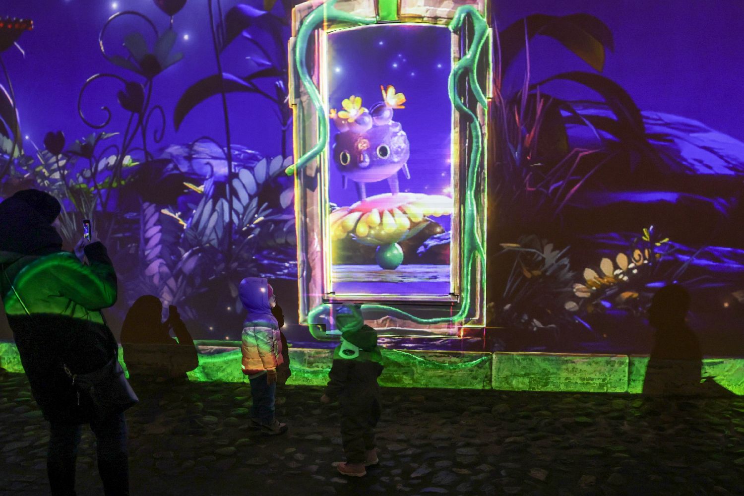 11月2日,民众在俄罗斯圣彼得堡彼得保罗要塞观看灯光秀。