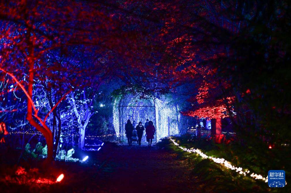 11月8日,游客在波兰华沙大学参观“魔法植物园”灯光展。