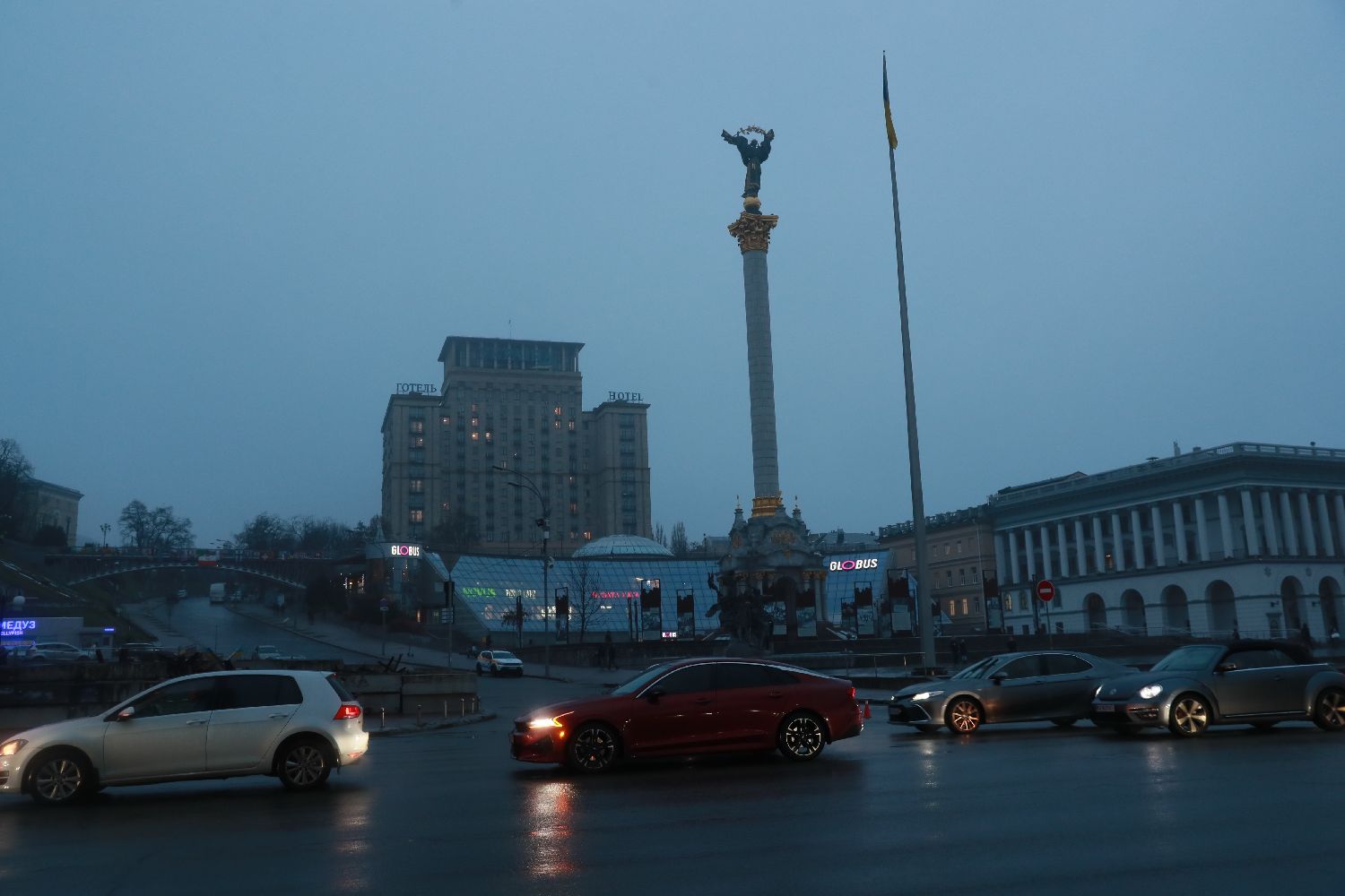 11月20日,乌克兰首都基辅主要街道的照明设施出现大面积停电,车辆在暮色中驶过独立广场。(图片来源:本文图片均据新华社)