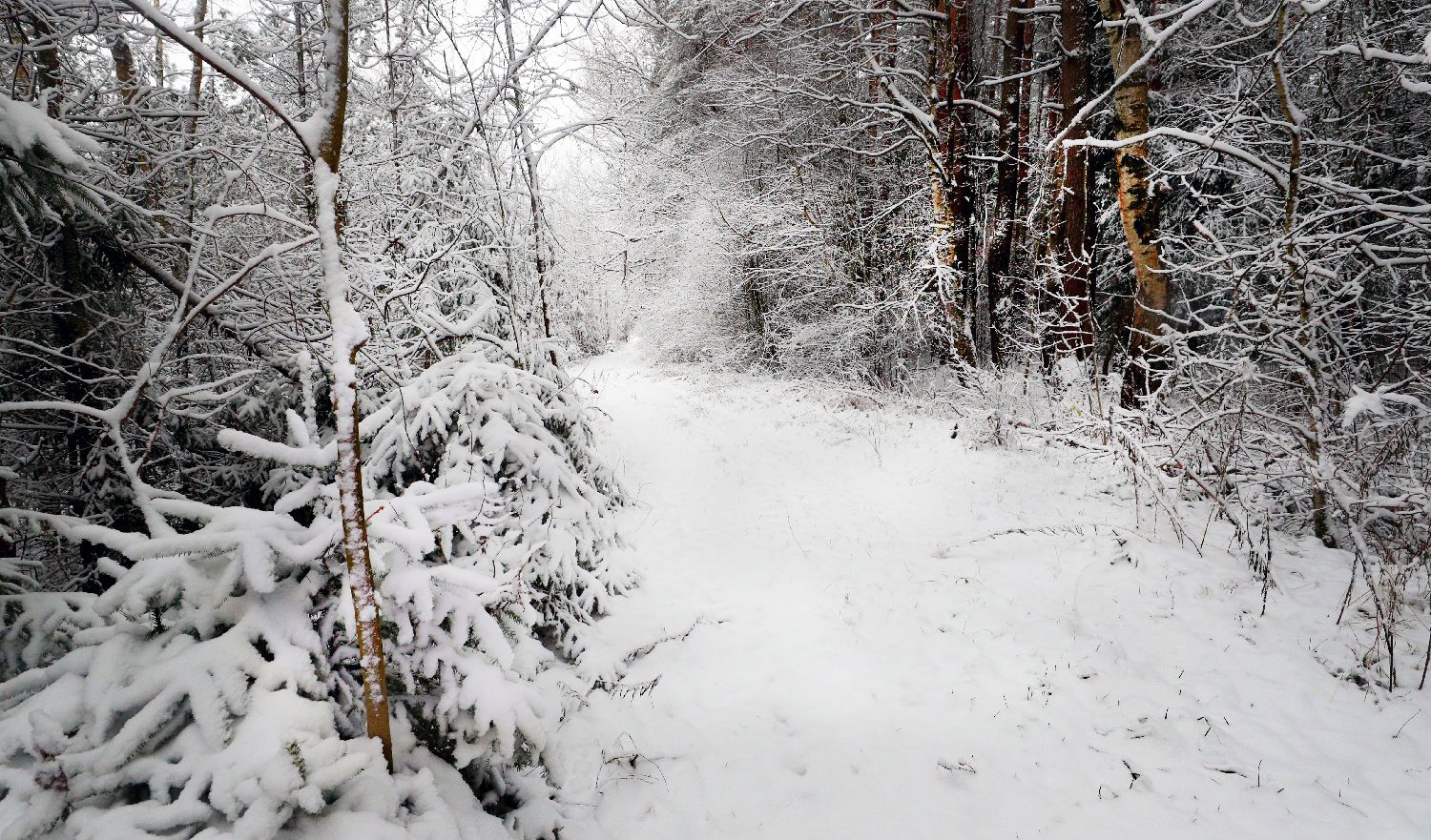 11月24日在白俄罗斯明斯克州拍摄的雪后森林。