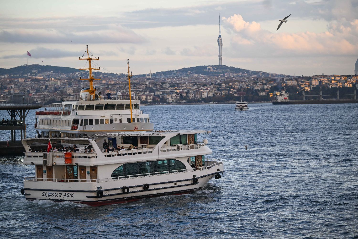 11月24日,船只在土耳其伊斯坦布尔金角湾的入口处航行。
