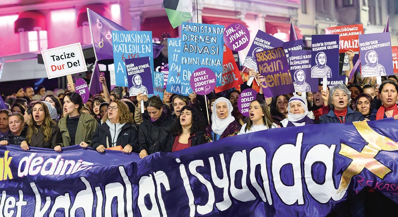 土耳其约2000名民众11月25日走上伊斯坦布尔街头示威,抗议性别暴力问题持续恶化。据统计,2025年1-10月间,土耳其有235名女性遭男性杀害,另有247名女性死因可疑。图为示威民众手举横幅抗议。法新社图