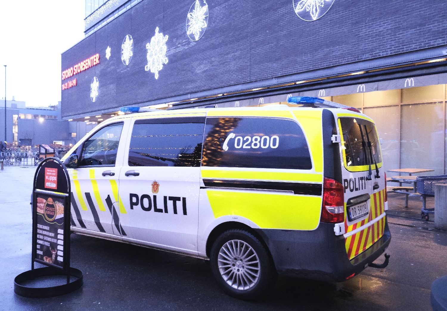 12月8日,警车停在挪威首都奥斯陆的斯托罗购物中心外。