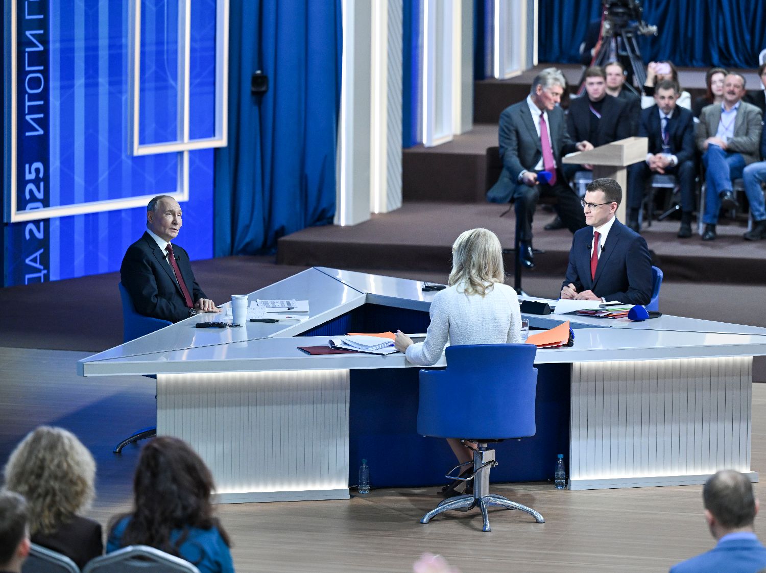 【欧洲时报网】俄罗斯总统普京19日在莫斯科红场附近的商栈展览中心举行一年一度的“年度盘点”活动,对2025年俄国内重要事务和重大国际问题进行总结,以现场问答、直播连线形式回答记者和俄民众提问。在持续约4个半小时里,普京共回答了80多个问题,涉及乌克兰问题、与西方关系,以及俄经济、人口、科教、社会和民生等热点问题。
