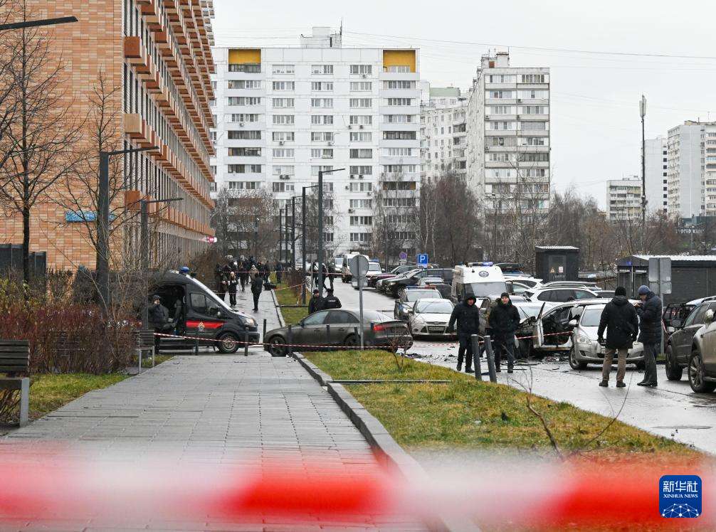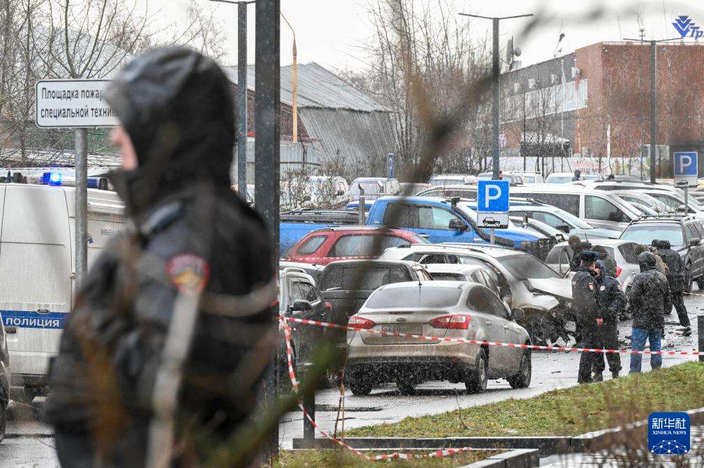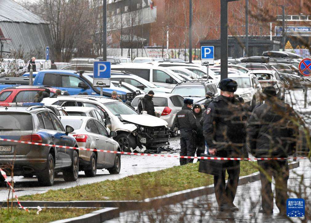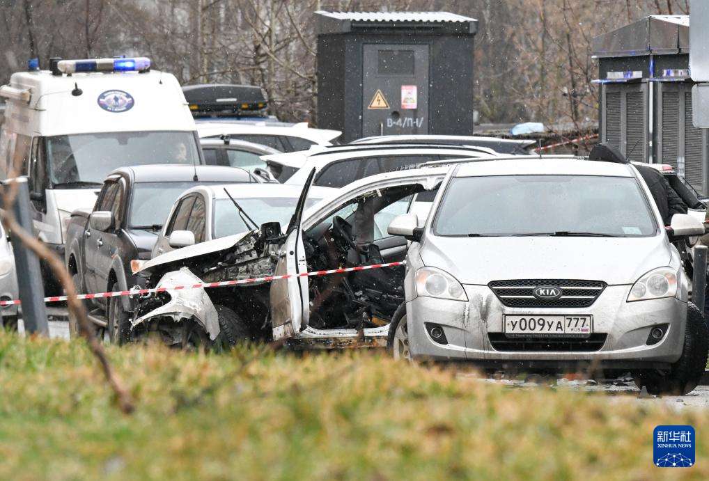 这是12月22日在俄罗斯首都莫斯科南部亚先涅瓦亚大街拍摄的汽车爆炸事件现场。(图片来源:本文图片均据新华社)