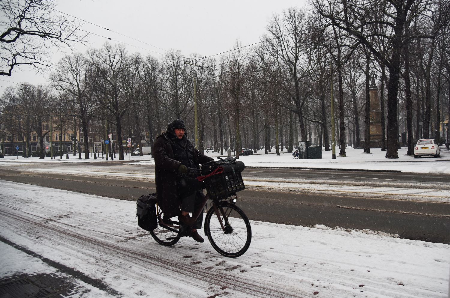 1月6日,一名男子在荷兰海牙街头骑行。