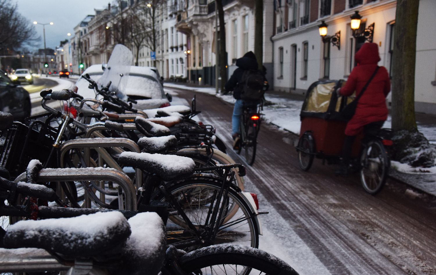1月6日,人们在荷兰海牙街头骑行。