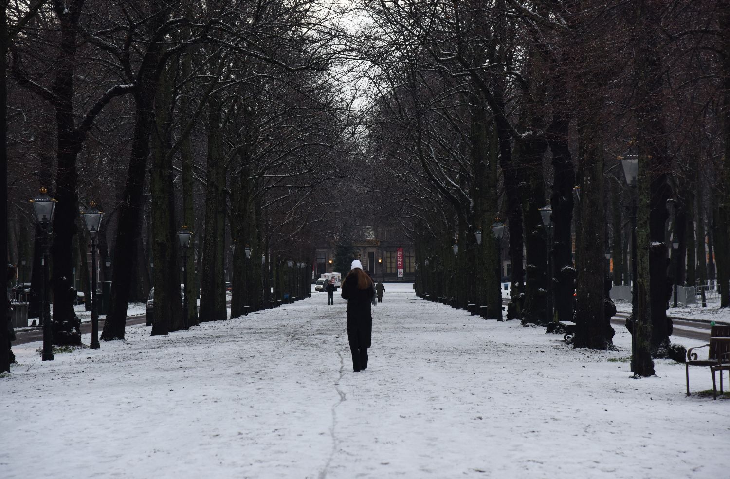 1月6日,在荷兰海牙,一名女子在雪地行走。