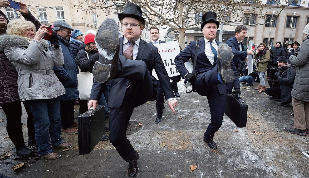1月10日,英国喜剧《巨蟒飞行马戏团》(Monty Python Flying Circus)的300多名粉丝以统一的黑色西装、礼帽和公文包装扮,聚集在捷克城市布尔诺街头,表演标志性的搞笑步伐,共同庆祝“国际滑稽漫步日”。于1969年首演的该剧以革新的电视喜剧模式发展,一定程度地影响了日后的英国喜剧。作为该剧粉丝,著名编程专家范罗苏姆将自己开发的编程语言以“巨蟒”(Python)命名。法新社图