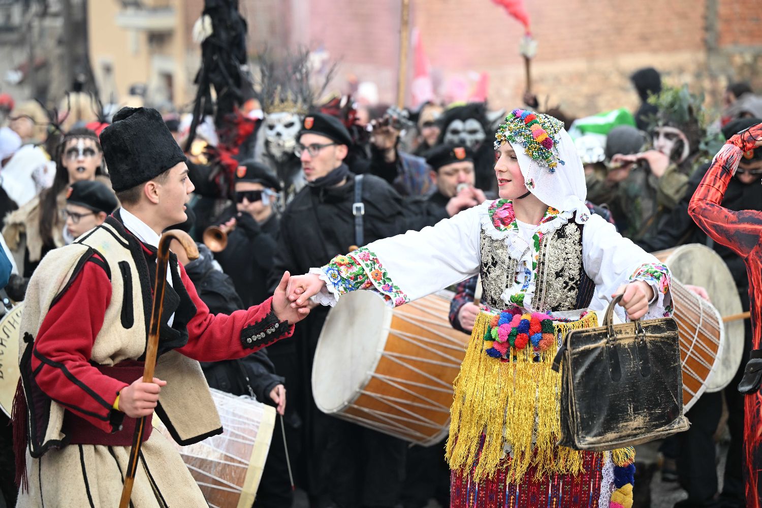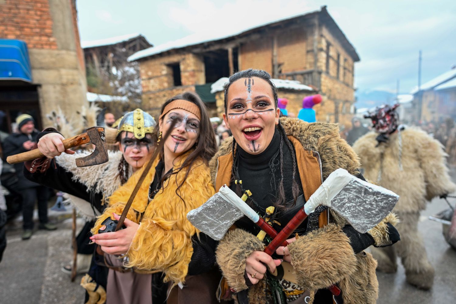 1月13日,在北马其顿的韦韦恰尼村,人们参加狂欢节庆祝活动。(图片来源:本文图片均据新华社)