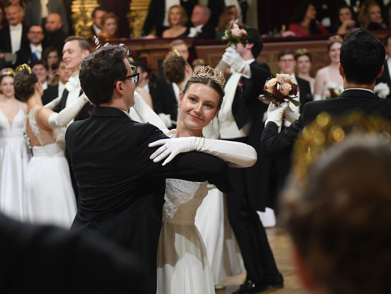 1月22日,人们在奥地利维也纳参加第83届维也纳爱乐乐团舞会。
