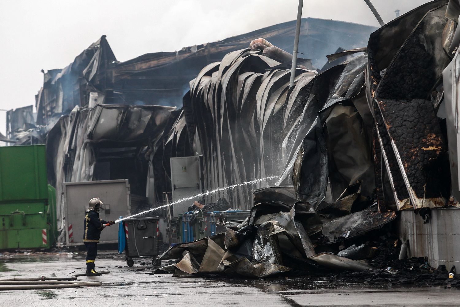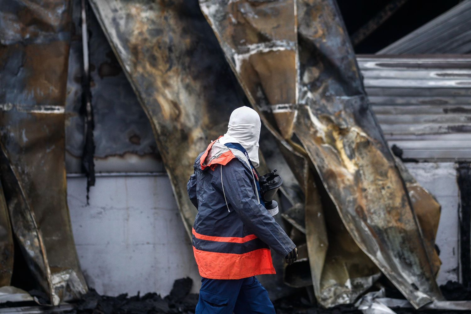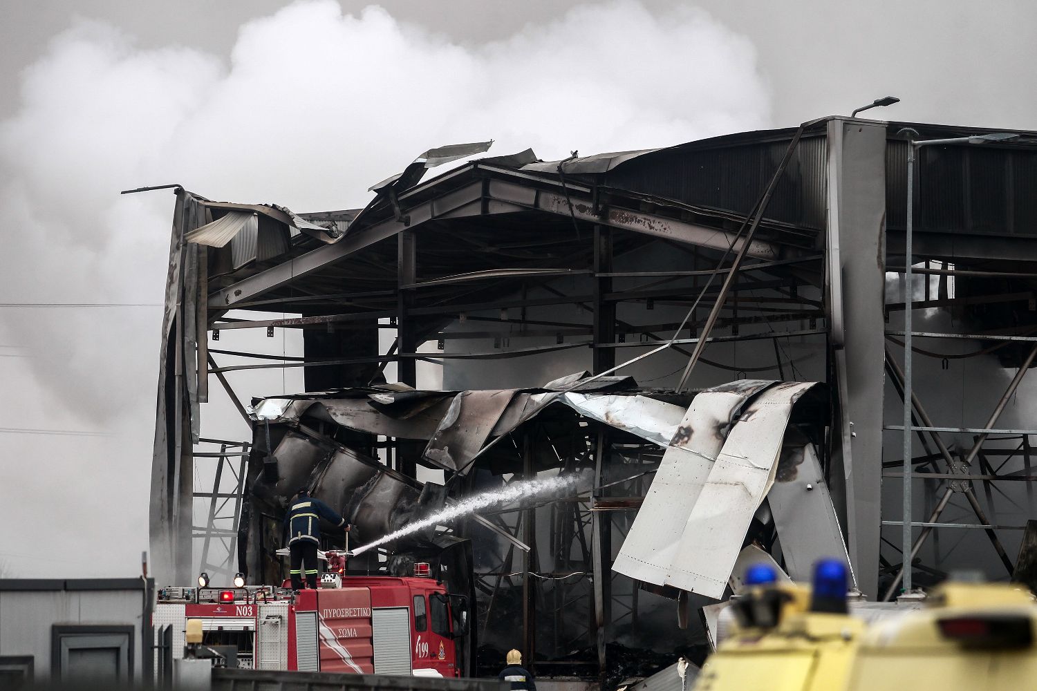 1月26日,消防员在希腊中部色萨利大区特里卡拉市的食品厂爆炸现场工作。