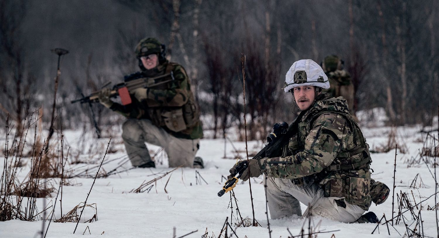 北约“寒冷反应26”联合军演日前在挪威举行,14个参与国家共投入3.2万名军人,100架军机和30艘战舰,以检验北约在北极开展行动的能力。图为3月11日,参加演习的士兵模拟突击行动。法新社图