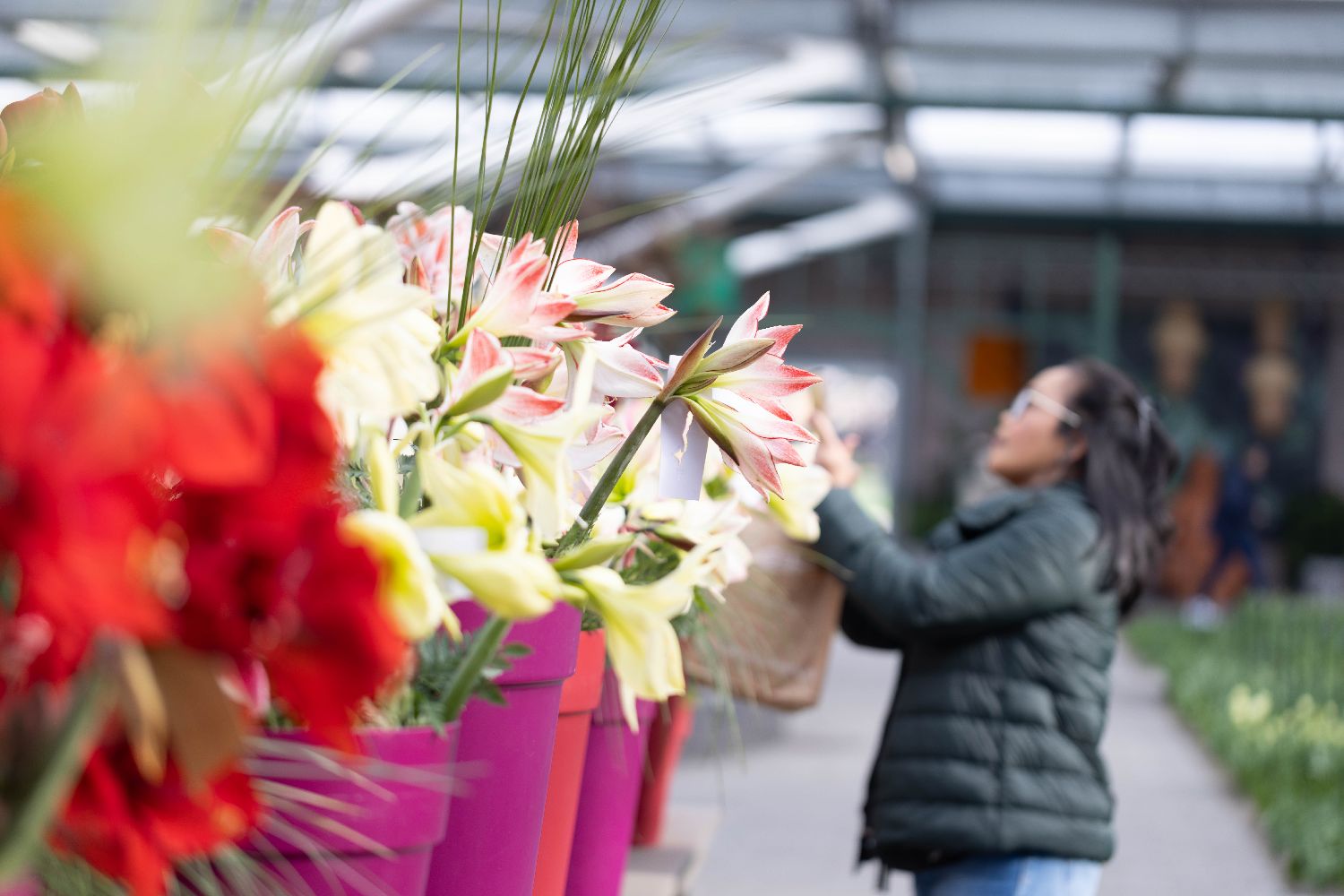 3月19日,一名游客在荷兰利瑟的库肯霍夫公园欣赏鲜花。(图片来源:本文图片均据新华社)