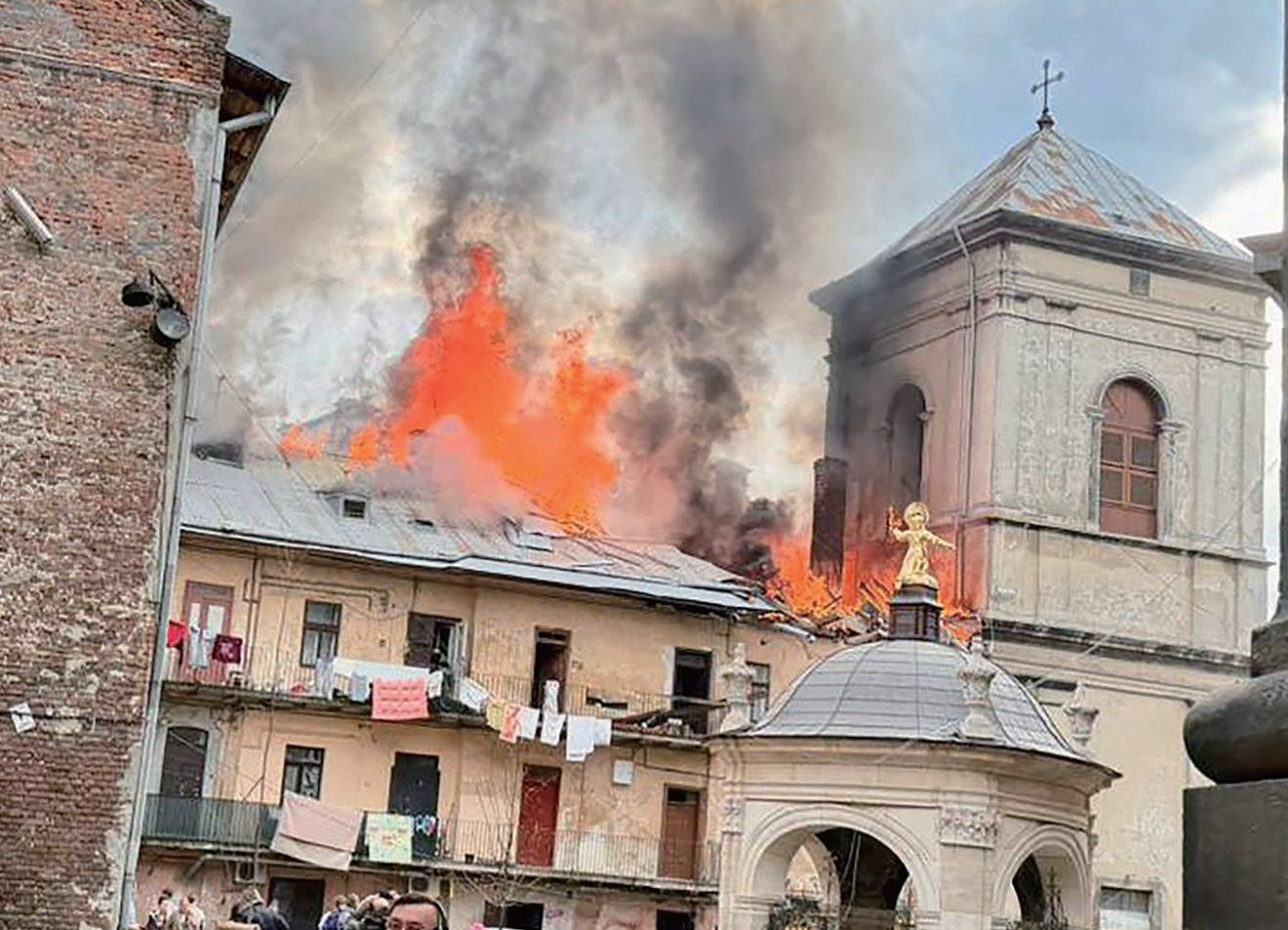 在乌克兰南部的扎波罗热市,遭俄军攻击的高楼住宅起火,窗户与阳台被炸毁,建筑物冒出浓烟。扎波罗热州长表示,袭击造成1人罹难、至少9人受伤。中部的波塔瓦州有2人丧生、12人受伤,其中包括一名5岁儿童。东部哈尔科夫州一辆列车遭无人机击中,一名61岁乘客当场死亡。